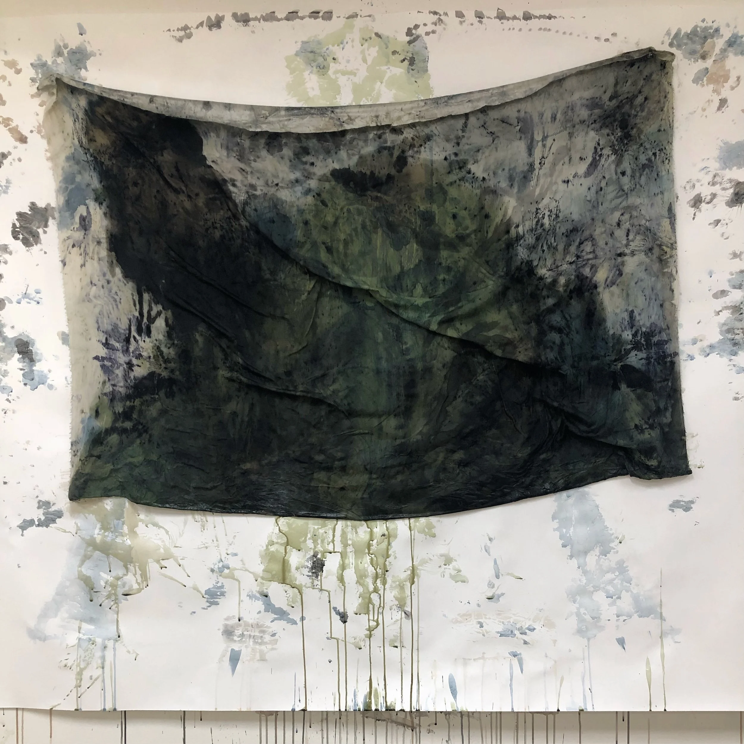 I use multi-sensory and proprioceptive action to translate this information into mark. When intellectual processing falters, the body continues to sense. Gesture-led drawing, pressing, staining and contact open a conversation between body, biome, environment and micro-fauna.
